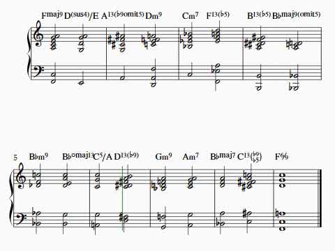 Voicings d'accompagnement jazz 23/08/2023 Dans la tonalité de Mib pour le Riff, on part de Sib7 on passe par Fa puis par Mib