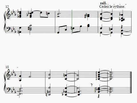 Bien entendu il y'a des tas de voicings possibles, mais remarquez bien dans cette tonalité de MIb, l'enchainement des accords surtout le deuxième accord, puis l'accord de sixte qui fait place au RE majeur puis FA mineur. Cette descente chromatique est purement délicieuse !